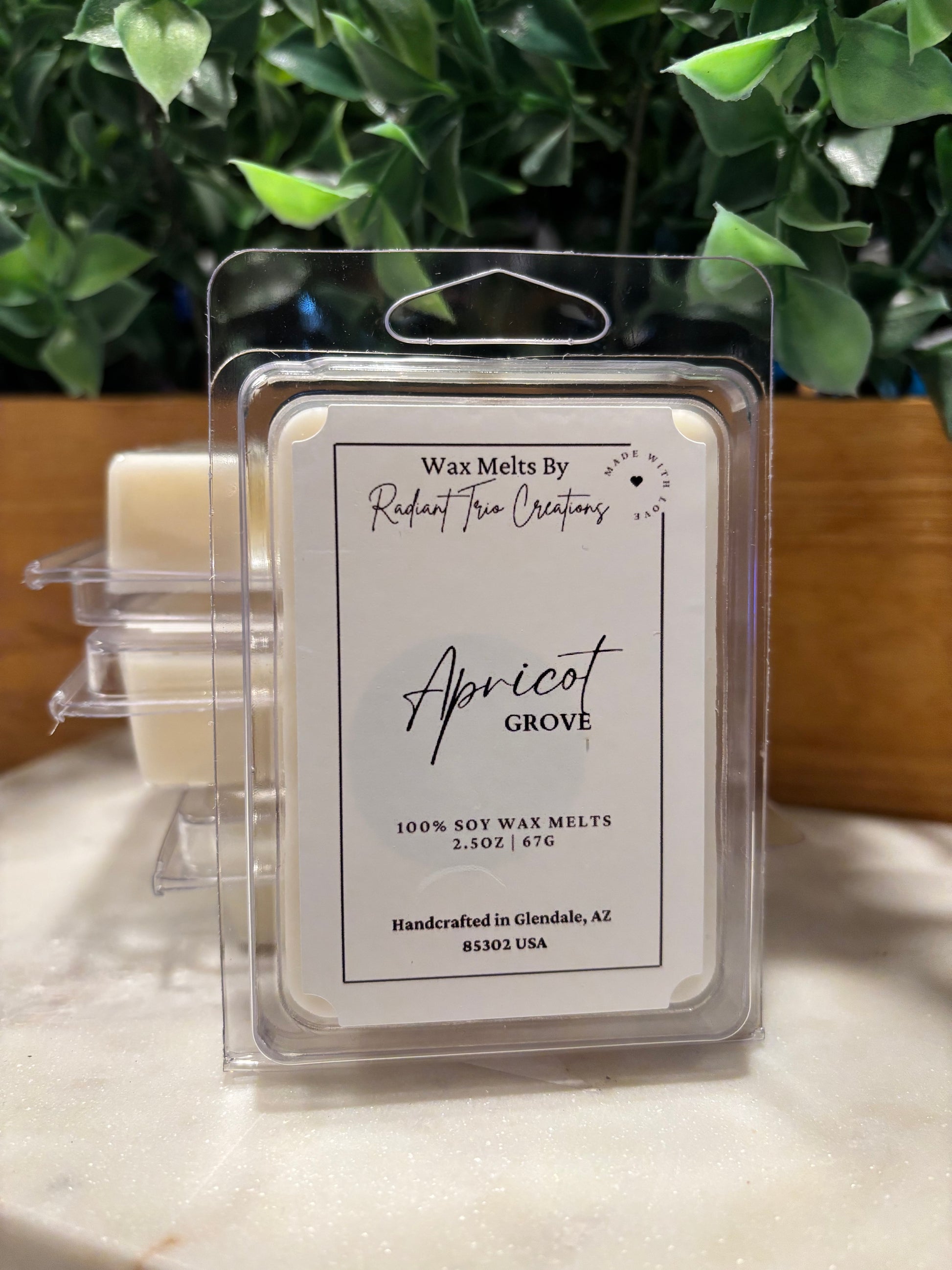Experience the delightful scent of Apricot Grove with our 2.5 oz soy wax melts. Made with high quality ingredients, our wax melts provide a long-lasting and natural fragrance that will transport you to a peaceful orchard. Simply melt in a wax warmer and enjoy the benefits of soy wax.